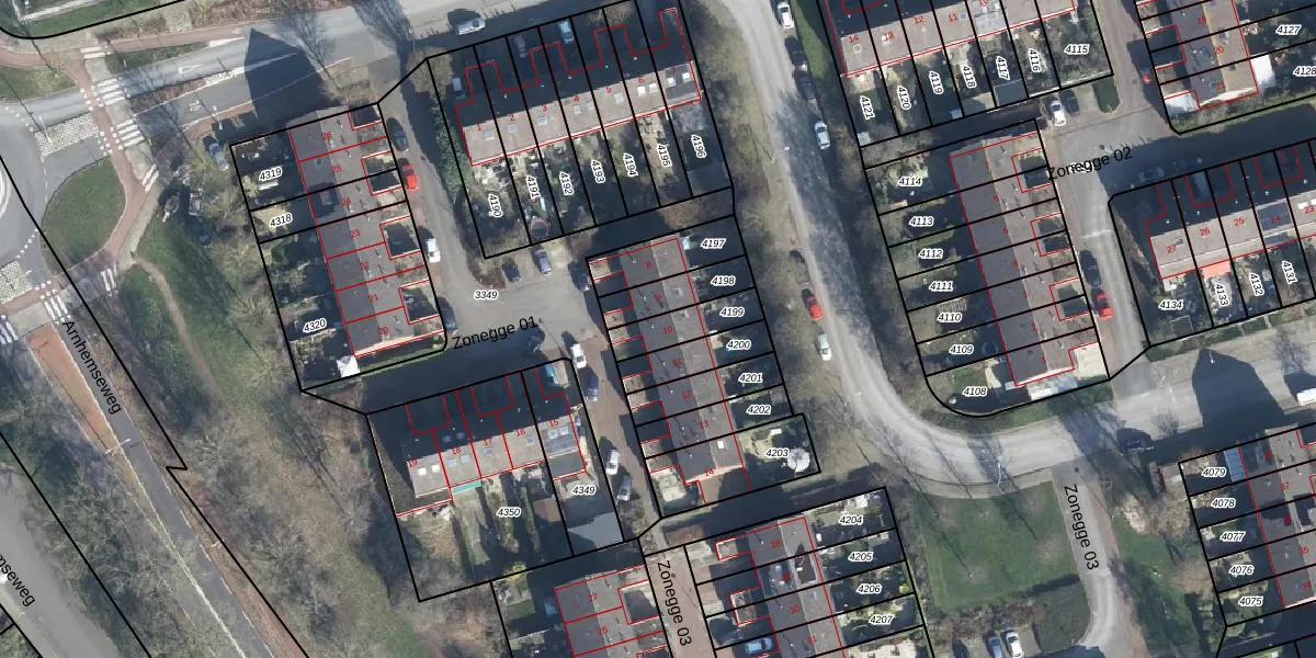 Zonegge 01 10 is gelegen op kadastraal perceel ZVN02K4199. Deze kadastrale aanduiding is uniek en wordt gebruikt door het Kadaster om eigendomsrechten en andere zakelijke rechten vast te leggen. Het perceel maakt onderdeel uit van de kadastrale gemeente Oud-Zevenaar.