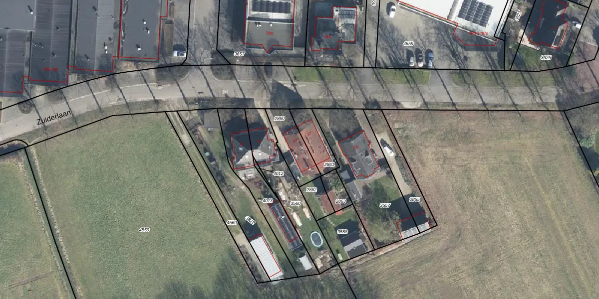 Zuiderlaan 39 is gelegen op kadastraal perceel ZVN02F2860. Deze kadastrale aanduiding is uniek en wordt gebruikt door het Kadaster om eigendomsrechten en andere zakelijke rechten vast te leggen. Het perceel maakt onderdeel uit van de kadastrale gemeente Oud-Zevenaar.