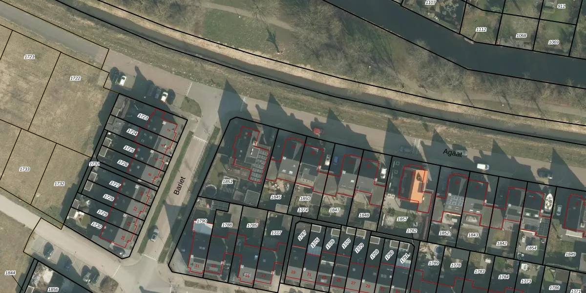 Het perceel waarop Agaat 21 staat heeft een oppervlakte van 284 m². Dit is een middelgroot perceel. De perceeloppervlakte wordt geregistreerd door het Kadaster. Gedetailleerde informatie over de maten van dit perceel kunt u vinden in het rapport Kadastrale kaart met maatvoering van Agaat 21.