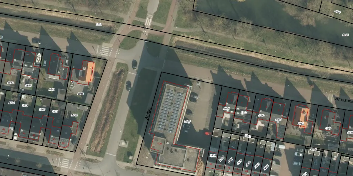 Het perceel waarop Amber 21 staat heeft een oppervlakte van 1996 m². Dit is een zeer groot perceel. De perceeloppervlakte wordt geregistreerd door het Kadaster. Gedetailleerde informatie over de maten van dit perceel kunt u vinden in het rapport Kadastrale kaart met maatvoering van Amber 21.