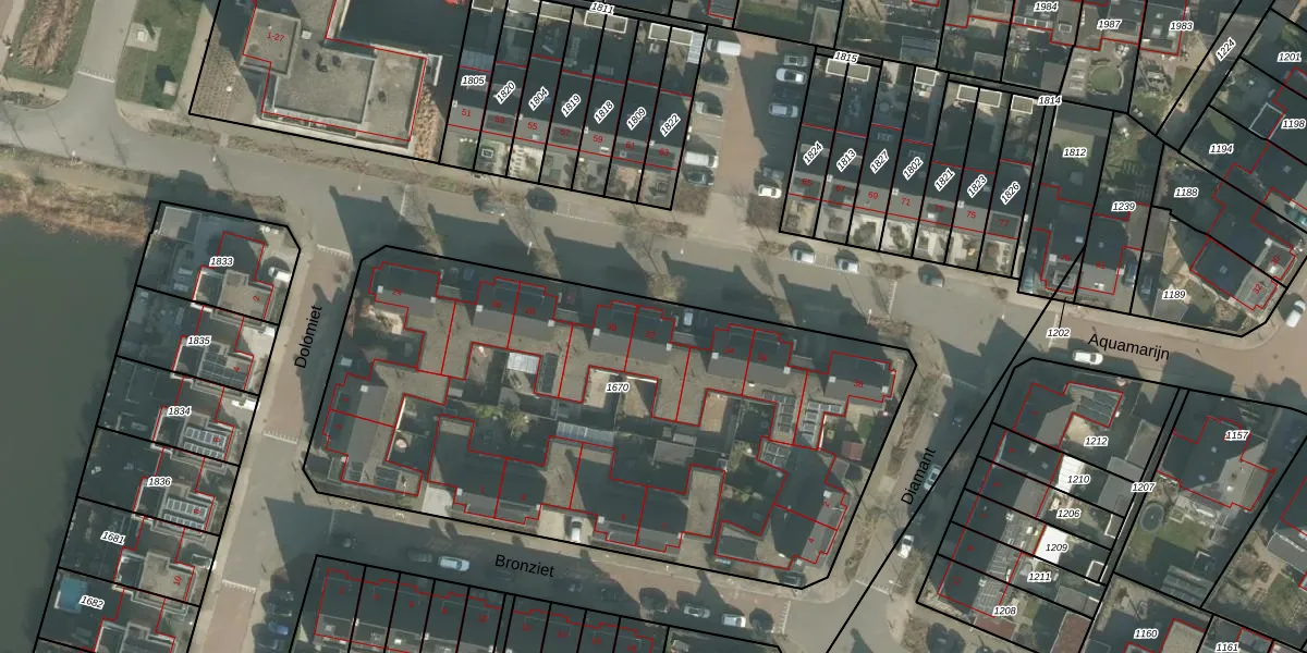 Het perceel waarop Aquamarijn 32 staat heeft een oppervlakte van 3270 m². Dit is een zeer groot perceel. De perceeloppervlakte wordt geregistreerd door het Kadaster. Gedetailleerde informatie over de maten van dit perceel kunt u vinden in het rapport Kadastrale kaart met maatvoering van Aquamarijn 32.