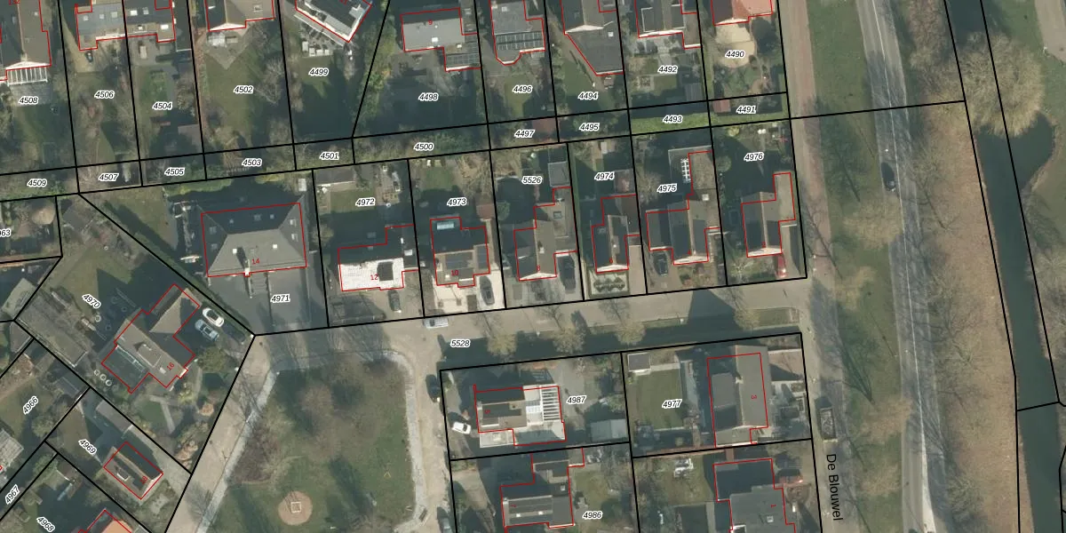 Het perceel waarop De Blouwel 8 staat heeft een oppervlakte van 438 m². Dit is een groot perceel. De perceeloppervlakte wordt geregistreerd door het Kadaster. Gedetailleerde informatie over de maten van dit perceel kunt u vinden in het rapport Kadastrale kaart met maatvoering van De Blouwel 8.