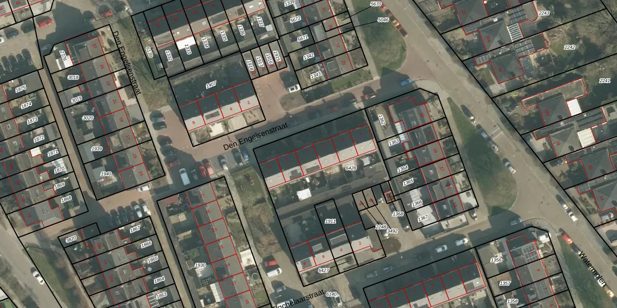 Het perceel waarop Den Engelsenstraat 7 staat heeft een oppervlakte van 1410 m². Dit is een zeer groot perceel. De perceeloppervlakte wordt geregistreerd door het Kadaster. Gedetailleerde informatie over de maten van dit perceel kunt u vinden in het rapport Kadastrale kaart met maatvoering van Den Engelsenstraat 7.