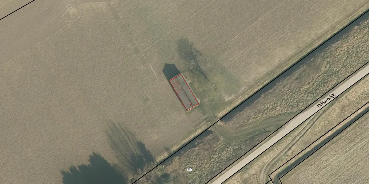Het perceel waarop Dikkendijk 2-a staat heeft een oppervlakte van 5,5 ha. Dit is een zeer groot perceel. De perceeloppervlakte wordt geregistreerd door het Kadaster. Gedetailleerde informatie over de maten van dit perceel kunt u vinden in het rapport Kadastrale kaart met maatvoering van Dikkendijk 2-a.