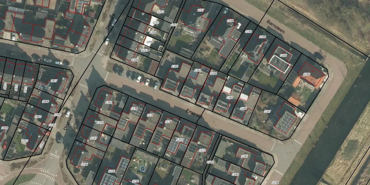 Het perceel waarop Emerald 3 staat heeft een oppervlakte van 215 m². Dit is een middelgroot perceel. De perceeloppervlakte wordt geregistreerd door het Kadaster. Gedetailleerde informatie over de maten van dit perceel kunt u vinden in het rapport Kadastrale kaart met maatvoering van Emerald 3.