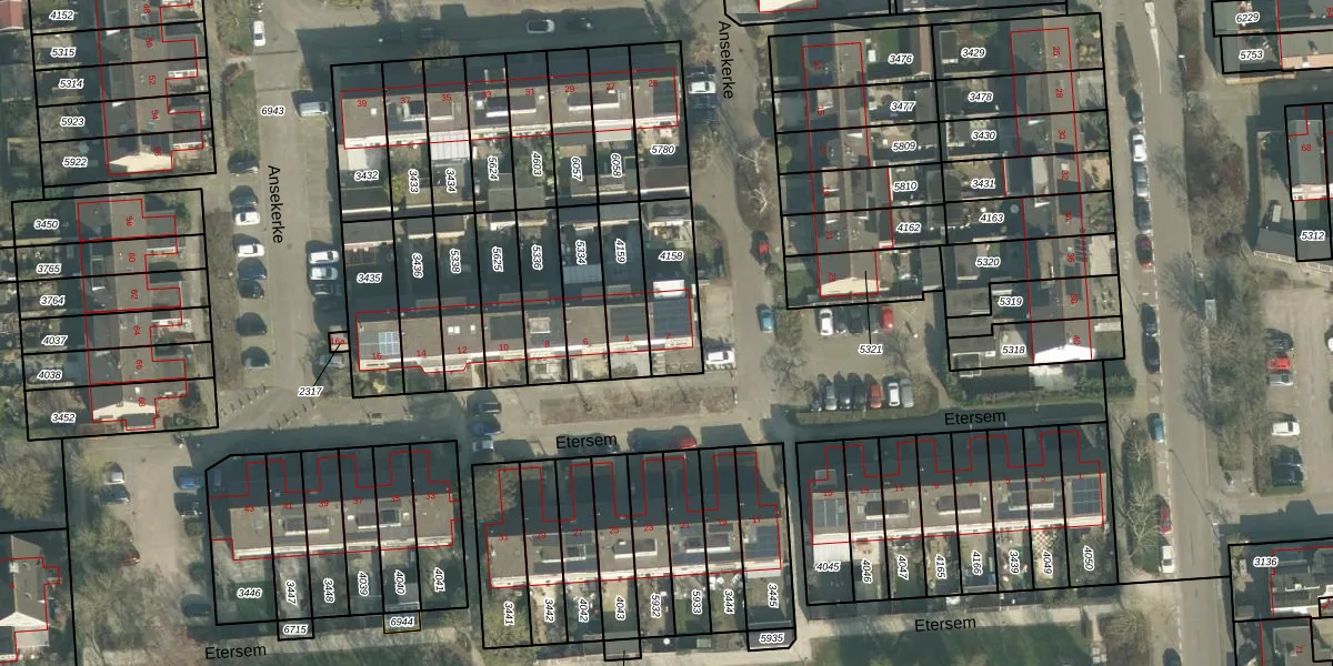 Gebruik de zoekbalk of klik op een perceel voor informatie over de adressen binnen dit perceel.