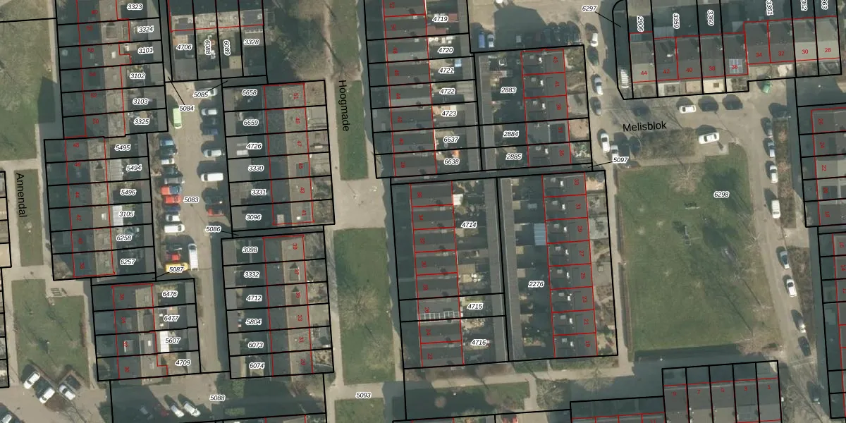 Het perceel waarop Hoogmade 34 staat heeft een oppervlakte van 685 m². Dit is een groot perceel. De perceeloppervlakte wordt geregistreerd door het Kadaster. Gedetailleerde informatie over de maten van dit perceel kunt u vinden in het rapport Kadastrale kaart met maatvoering van Hoogmade 34.