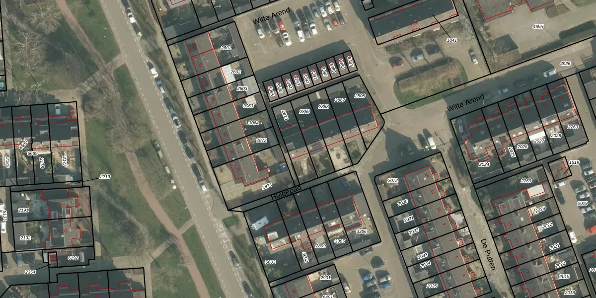 Gebruik de zoekbalk of klik op een perceel voor informatie over de adressen binnen dit perceel.