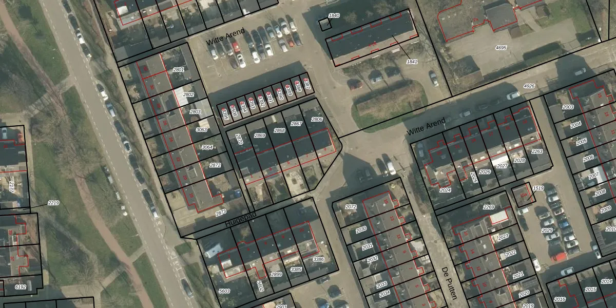 Gebruik de zoekbalk of klik op een perceel voor informatie over de adressen binnen dit perceel.