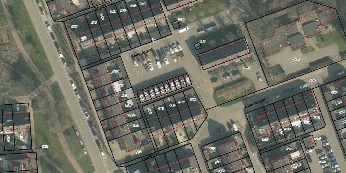 Gebruik de zoekbalk of klik op een perceel voor informatie over de adressen binnen dit perceel.