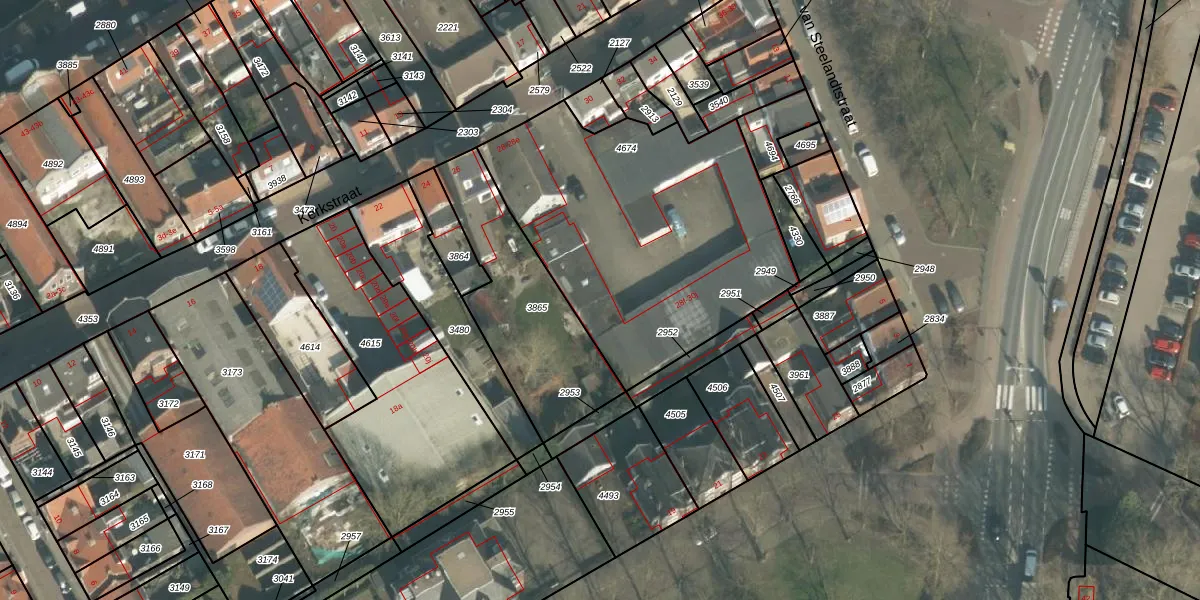 Het adres ligt op het perceel ZVB00-M-4674, dat zich in de kadastrale gemeente Zevenbergen bevindt. Het perceel is kleiner dan gemiddeld in Zevenbergen. Het perceel is 1505 m² groot, terwijl het gemiddelde ligt op 4435,38 m². De grootste perceeloppervlakte in de kadastrale gemeente is 1,58 km². De kleinste oppervlakte bedraagt 0 m². Er zijn 32 adressen aanwezig op het perceel. De laatste wijziging in het de Basisregistratie Kadaster (BRK) was op 17-08-2012.