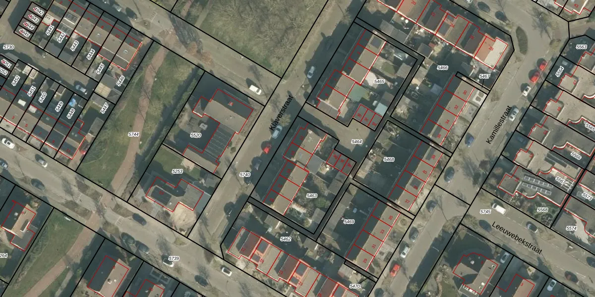 Het perceel waarop Klaverstraat 13 staat heeft een oppervlakte van 760 m². Dit is een groot perceel. De perceeloppervlakte wordt geregistreerd door het Kadaster. Gedetailleerde informatie over de maten van dit perceel kunt u vinden in het rapport Kadastrale kaart met maatvoering van Klaverstraat 13.
