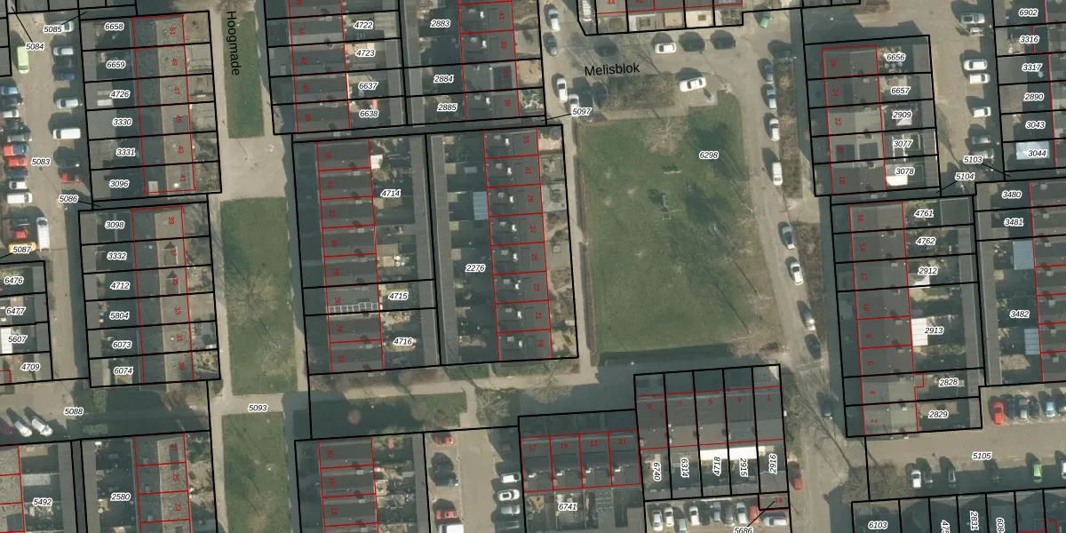 Het perceel waarop Melisblok 25 staat heeft een oppervlakte van 1119 m². Dit is een zeer groot perceel. De perceeloppervlakte wordt geregistreerd door het Kadaster. Gedetailleerde informatie over de maten van dit perceel kunt u vinden in het rapport Kadastrale kaart met maatvoering van Melisblok 25.