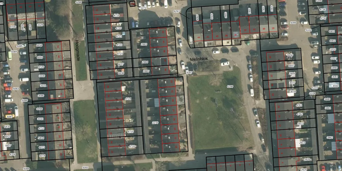 Het perceel waarop Melisblok 33 staat heeft een oppervlakte van 1119 m². Dit is een zeer groot perceel. De perceeloppervlakte wordt geregistreerd door het Kadaster. Gedetailleerde informatie over de maten van dit perceel kunt u vinden in het rapport Kadastrale kaart met maatvoering van Melisblok 33.