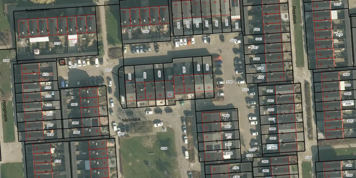Het perceel waarop Melisblok 34 staat heeft een oppervlakte van 395 m². Dit is een groot perceel. De perceeloppervlakte wordt geregistreerd door het Kadaster. Gedetailleerde informatie over de maten van dit perceel kunt u vinden in het rapport Kadastrale kaart met maatvoering van Melisblok 34.