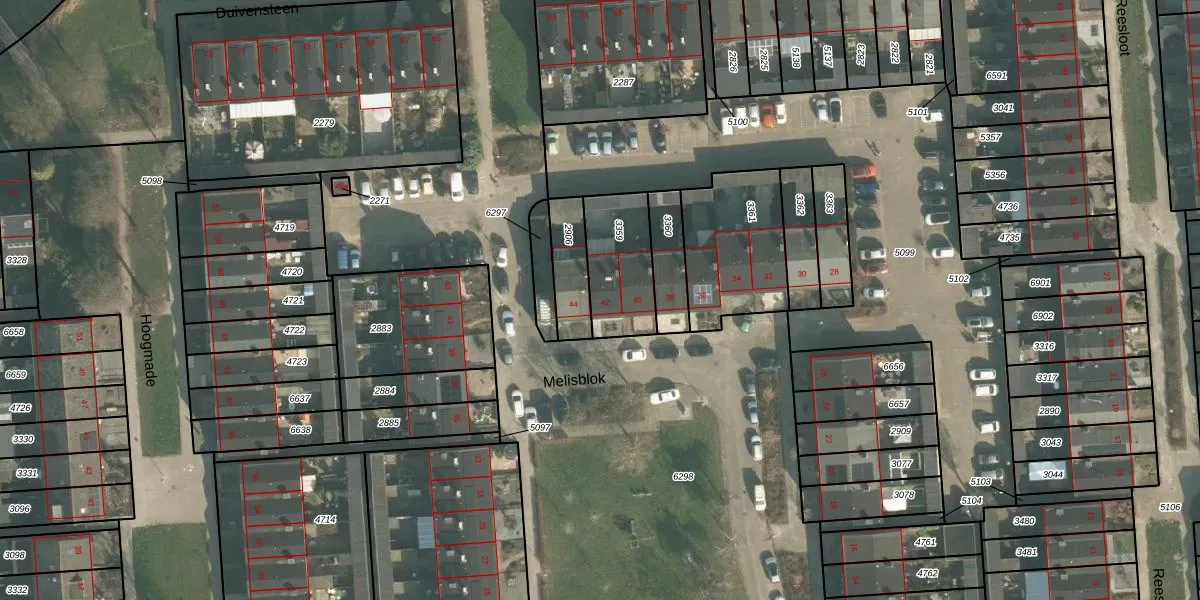 Het perceel waarop Melisblok 42 staat heeft een oppervlakte van 257 m². Dit is een middelgroot perceel. De perceeloppervlakte wordt geregistreerd door het Kadaster. Gedetailleerde informatie over de maten van dit perceel kunt u vinden in het rapport Kadastrale kaart met maatvoering van Melisblok 42.