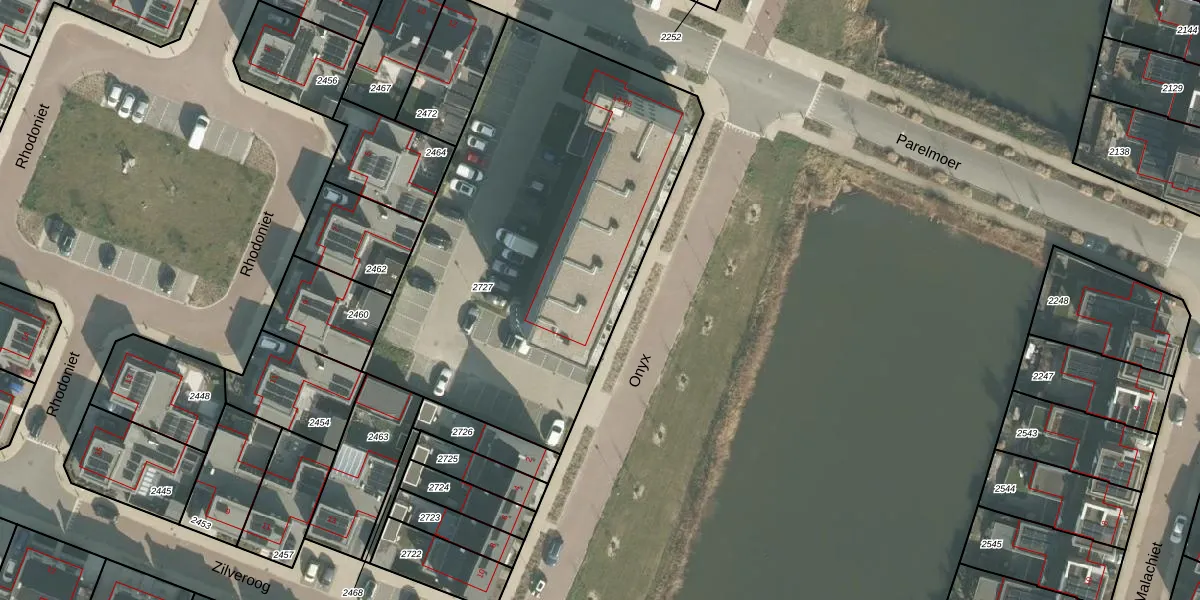 Het perceel waarop Parelmoer 18 staat heeft een oppervlakte van 2295 m². Dit is een zeer groot perceel. De perceeloppervlakte wordt geregistreerd door het Kadaster. Gedetailleerde informatie over de maten van dit perceel kunt u vinden in het rapport Kadastrale kaart met maatvoering van Parelmoer 18.