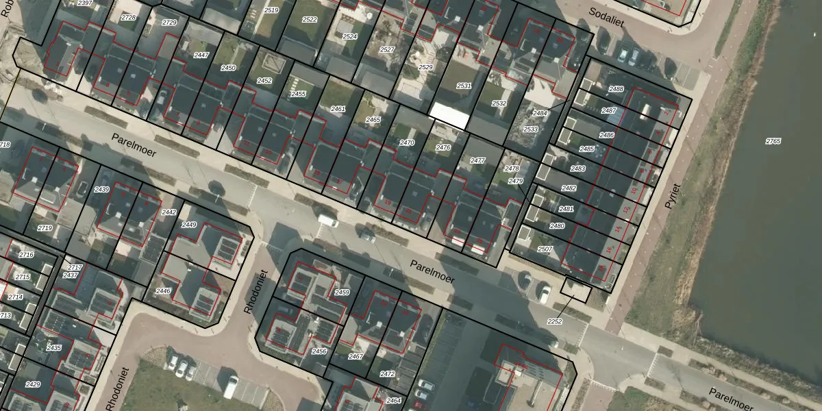 Het perceel waarop Parelmoer 21 staat heeft een oppervlakte van 257 m². Dit is een middelgroot perceel. De perceeloppervlakte wordt geregistreerd door het Kadaster. Gedetailleerde informatie over de maten van dit perceel kunt u vinden in het rapport Kadastrale kaart met maatvoering van Parelmoer 21.