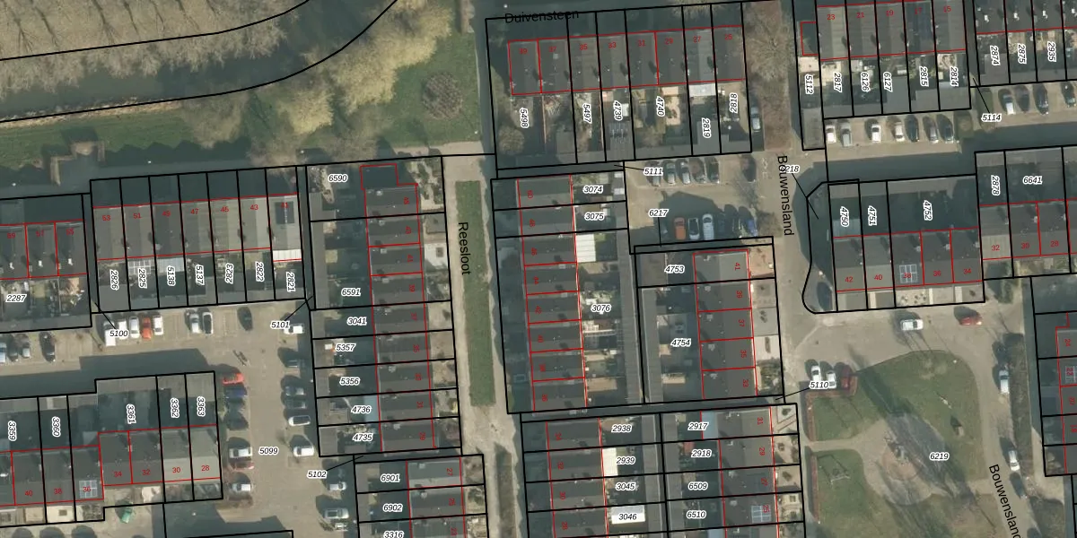 Het perceel waarop Reesloot 44 staat heeft een oppervlakte van 835 m². Dit is een groot perceel. De perceeloppervlakte wordt geregistreerd door het Kadaster. Gedetailleerde informatie over de maten van dit perceel kunt u vinden in het rapport Kadastrale kaart met maatvoering van Reesloot 44.