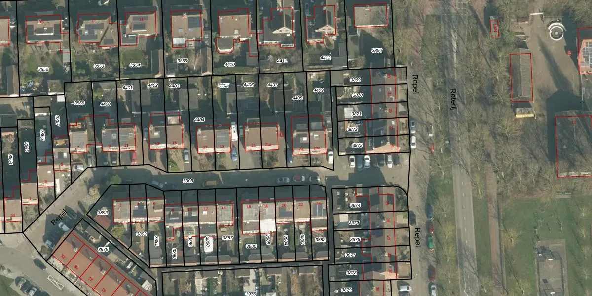 Gebruik de zoekbalk of klik op een perceel voor informatie over de adressen binnen dit perceel.