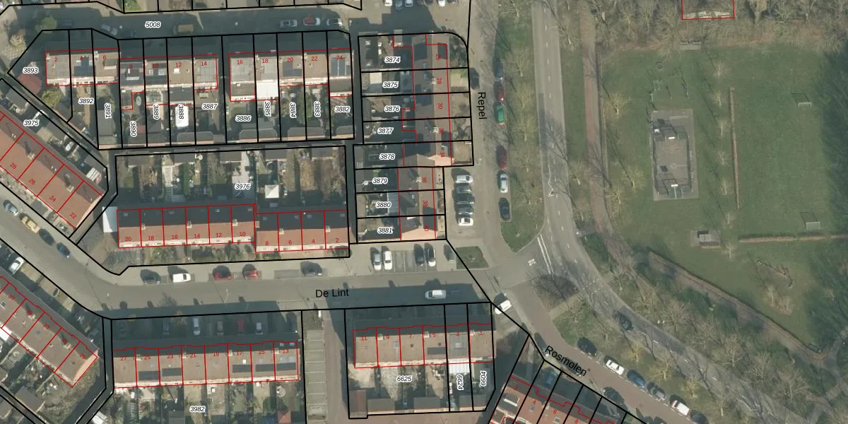 Het perceel waarop Repel 38 staat heeft een oppervlakte van 119 m². Dit is een middelgroot perceel. De perceeloppervlakte wordt geregistreerd door het Kadaster. Gedetailleerde informatie over de maten van dit perceel kunt u vinden in het rapport Kadastrale kaart met maatvoering van Repel 38.