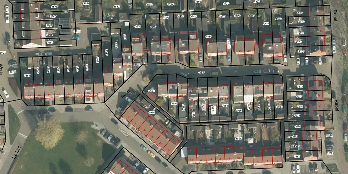 Het perceel waarop Repel 4 staat heeft een oppervlakte van 151 m². Dit is een middelgroot perceel. De perceeloppervlakte wordt geregistreerd door het Kadaster. Gedetailleerde informatie over de maten van dit perceel kunt u vinden in het rapport Kadastrale kaart met maatvoering van Repel 4.