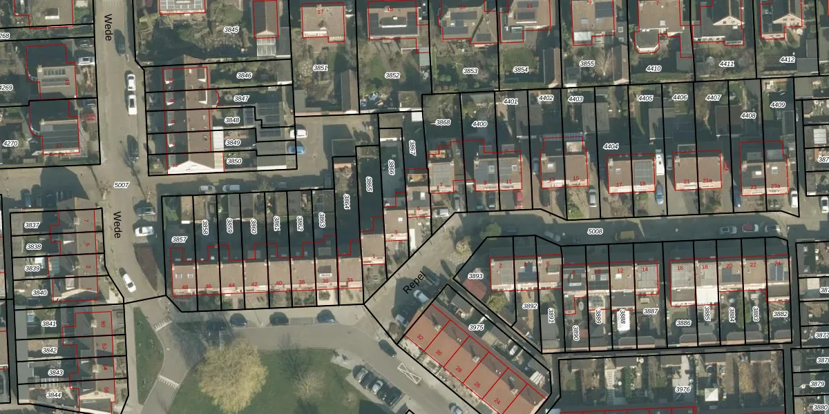 Het perceel waarop Repel 5 staat heeft een oppervlakte van 211 m². Dit is een middelgroot perceel. De perceeloppervlakte wordt geregistreerd door het Kadaster. Gedetailleerde informatie over de maten van dit perceel kunt u vinden in het rapport Kadastrale kaart met maatvoering van Repel 5.