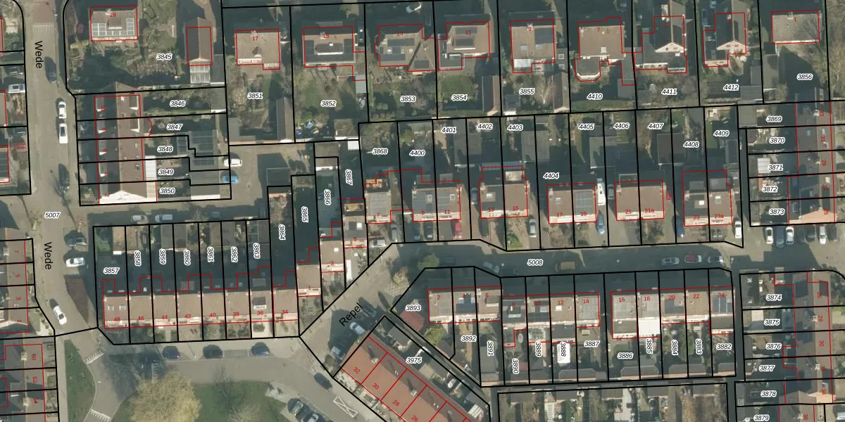 Het perceel waarop Repel 9 staat heeft een oppervlakte van 233 m². Dit is een middelgroot perceel. De perceeloppervlakte wordt geregistreerd door het Kadaster. Gedetailleerde informatie over de maten van dit perceel kunt u vinden in het rapport Kadastrale kaart met maatvoering van Repel 9.