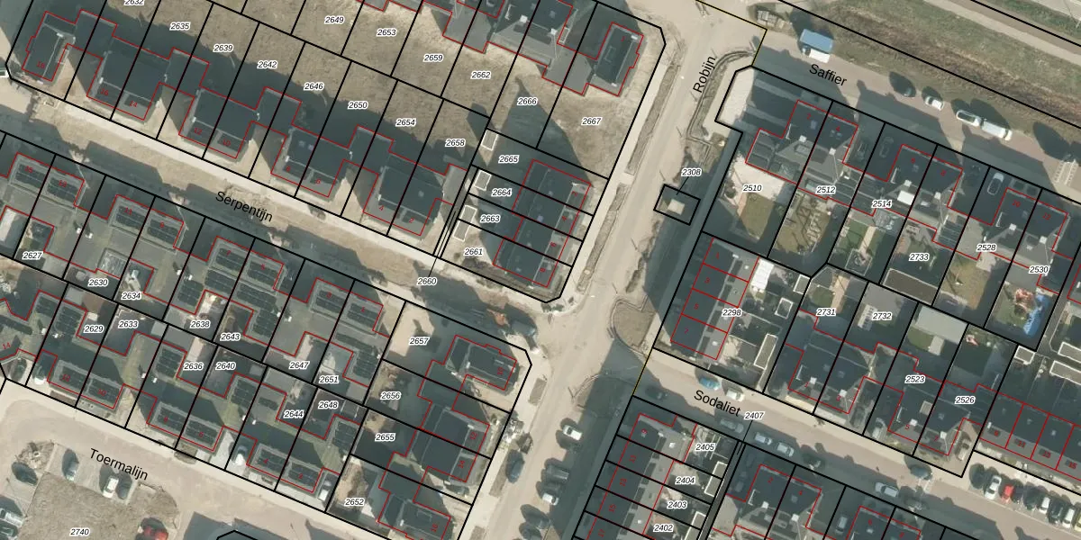 Het perceel waarop Robijn 8 staat heeft een oppervlakte van 184 m². Dit is een middelgroot perceel. De perceeloppervlakte wordt geregistreerd door het Kadaster. Gedetailleerde informatie over de maten van dit perceel kunt u vinden in het rapport Kadastrale kaart met maatvoering van Robijn 8.