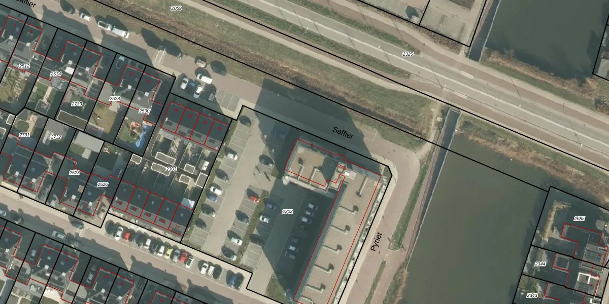 Het perceel waarop Saffier 46 staat heeft een oppervlakte van 2908 m². Dit is een zeer groot perceel. De perceeloppervlakte wordt geregistreerd door het Kadaster. Gedetailleerde informatie over de maten van dit perceel kunt u vinden in het rapport Kadastrale kaart met maatvoering van Saffier 46.