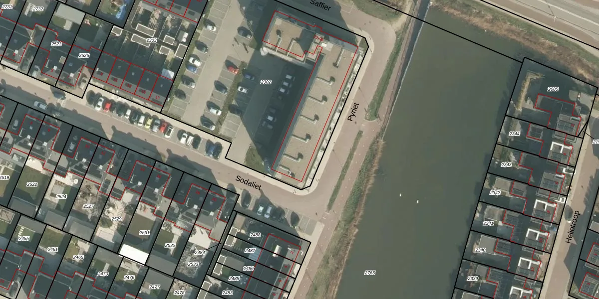 Het perceel waarop Saffier 60 staat heeft een oppervlakte van 2908 m². Dit is een zeer groot perceel. De perceeloppervlakte wordt geregistreerd door het Kadaster. Gedetailleerde informatie over de maten van dit perceel kunt u vinden in het rapport Kadastrale kaart met maatvoering van Saffier 60.