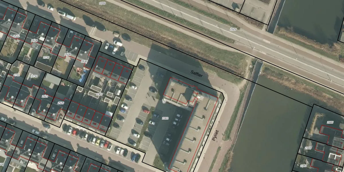 Het perceel waarop Saffier 64 staat heeft een oppervlakte van 2908 m². Dit is een zeer groot perceel. De perceeloppervlakte wordt geregistreerd door het Kadaster. Gedetailleerde informatie over de maten van dit perceel kunt u vinden in het rapport Kadastrale kaart met maatvoering van Saffier 64.