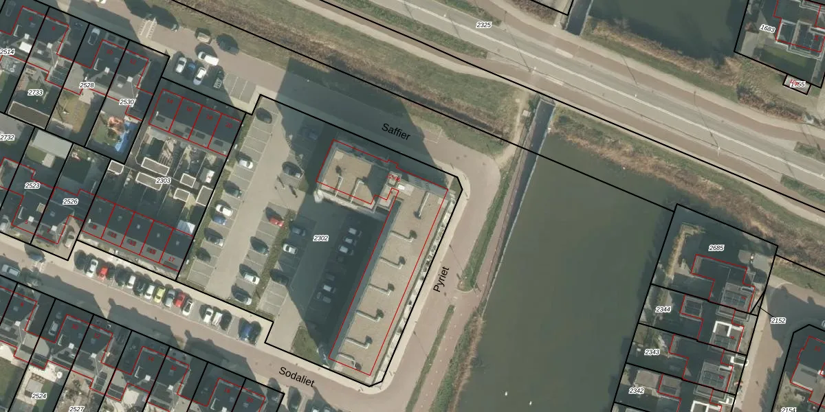 Het perceel waarop Saffier 68 staat heeft een oppervlakte van 2908 m². Dit is een zeer groot perceel. De perceeloppervlakte wordt geregistreerd door het Kadaster. Gedetailleerde informatie over de maten van dit perceel kunt u vinden in het rapport Kadastrale kaart met maatvoering van Saffier 68.