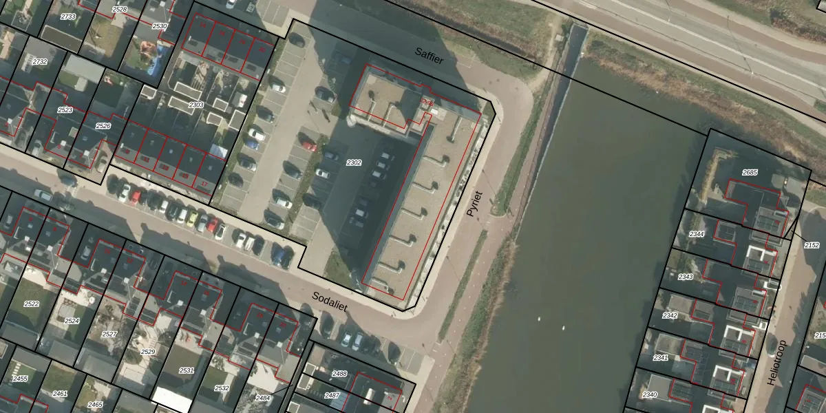 Het perceel waarop Saffier 74 staat heeft een oppervlakte van 2908 m². Dit is een zeer groot perceel. De perceeloppervlakte wordt geregistreerd door het Kadaster. Gedetailleerde informatie over de maten van dit perceel kunt u vinden in het rapport Kadastrale kaart met maatvoering van Saffier 74.
