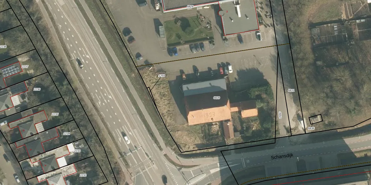 Het perceel waarop Schansdijk 3-b-6 staat heeft een oppervlakte van 3195 m². Dit is een zeer groot perceel. De perceeloppervlakte wordt geregistreerd door het Kadaster. Gedetailleerde informatie over de maten van dit perceel kunt u vinden in het rapport Kadastrale kaart met maatvoering van Schansdijk 3-b-6.