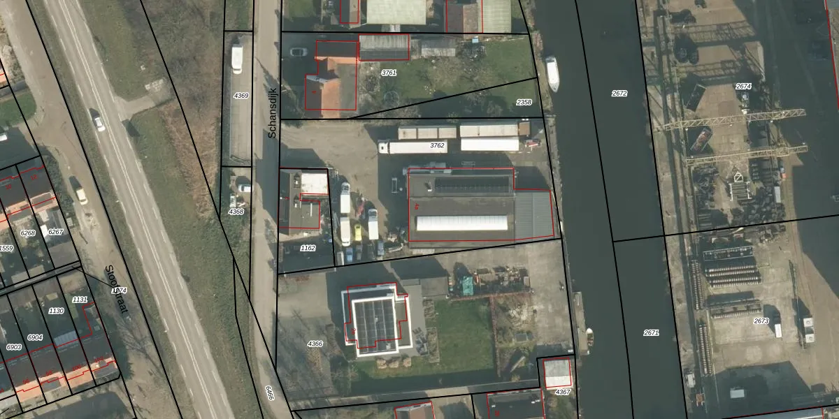 Het perceel waarop Schansdijk 4-a staat heeft een oppervlakte van 1830 m². Dit is een zeer groot perceel. De perceeloppervlakte wordt geregistreerd door het Kadaster. Gedetailleerde informatie over de maten van dit perceel kunt u vinden in het rapport Kadastrale kaart met maatvoering van Schansdijk 4-a.