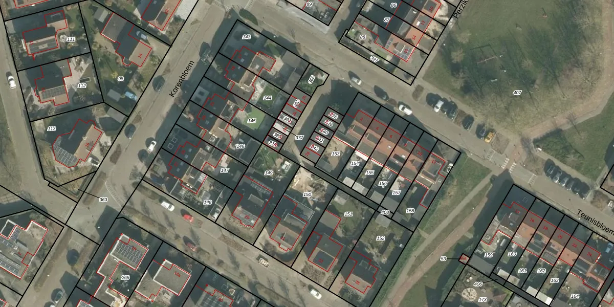Het perceel waarop Teunisbloem 2-g staat heeft een oppervlakte van 36 m². Dit is een klein perceel. De perceeloppervlakte wordt geregistreerd door het Kadaster. Gedetailleerde informatie over de maten van dit perceel kunt u vinden in het rapport Kadastrale kaart met maatvoering van Teunisbloem 2-g.