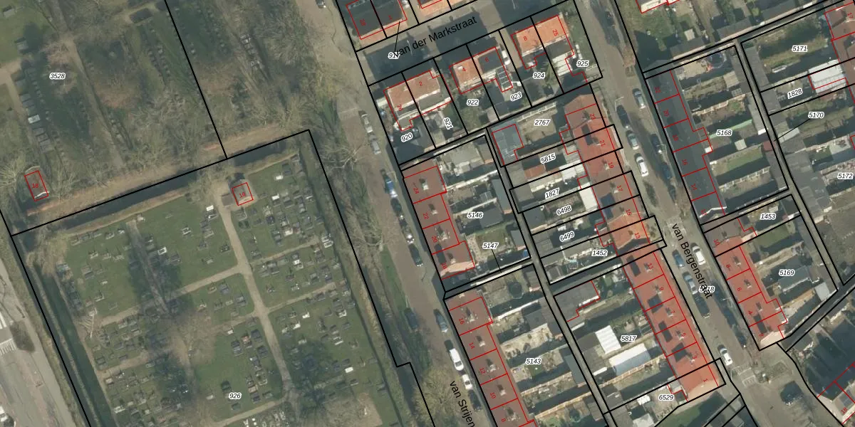 Het perceel waarop van Strijenstraat 22 staat heeft een oppervlakte van 656 m². Dit is een groot perceel. De perceeloppervlakte wordt geregistreerd door het Kadaster. Gedetailleerde informatie over de maten van dit perceel kunt u vinden in het rapport Kadastrale kaart met maatvoering van van Strijenstraat 22.