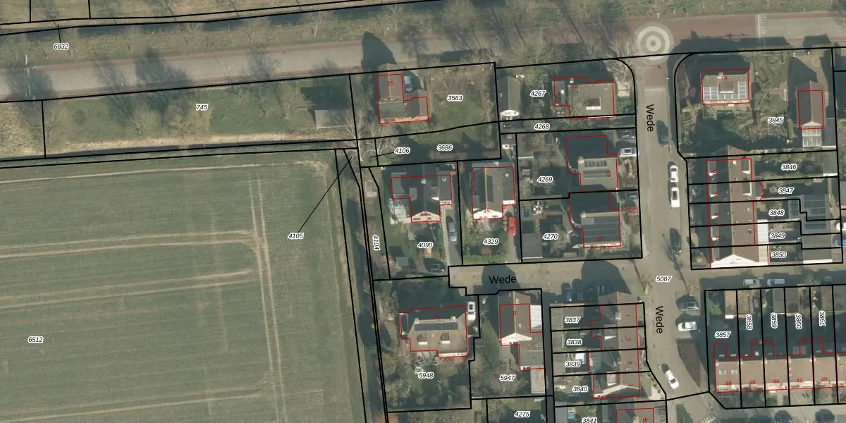 Het perceel waarop Wede 13 staat heeft een oppervlakte van 490 m². Dit is een groot perceel. De perceeloppervlakte wordt geregistreerd door het Kadaster. Gedetailleerde informatie over de maten van dit perceel kunt u vinden in het rapport Kadastrale kaart met maatvoering van Wede 13.
