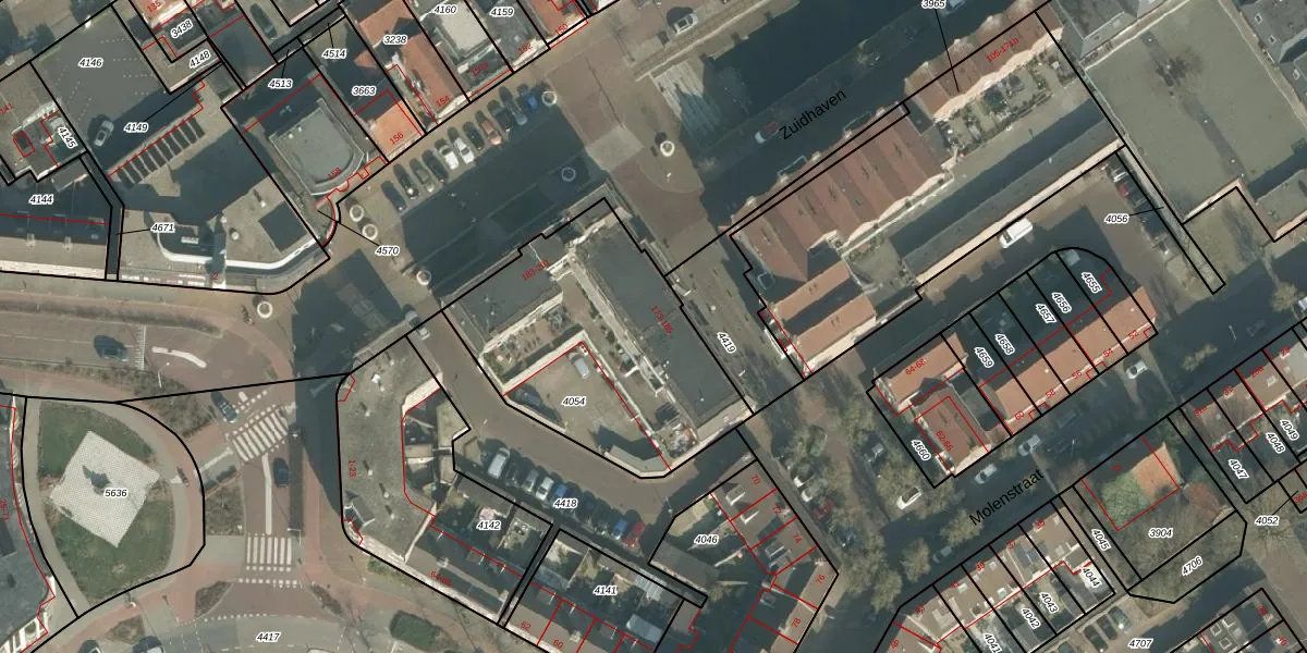 Zuidhaven 181 is gelegen op kadastraal perceel ZVB00M4054. Deze kadastrale aanduiding is uniek en wordt gebruikt door het Kadaster om eigendomsrechten en andere zakelijke rechten vast te leggen. Het perceel maakt onderdeel uit van de kadastrale gemeente Zevenbergen.
