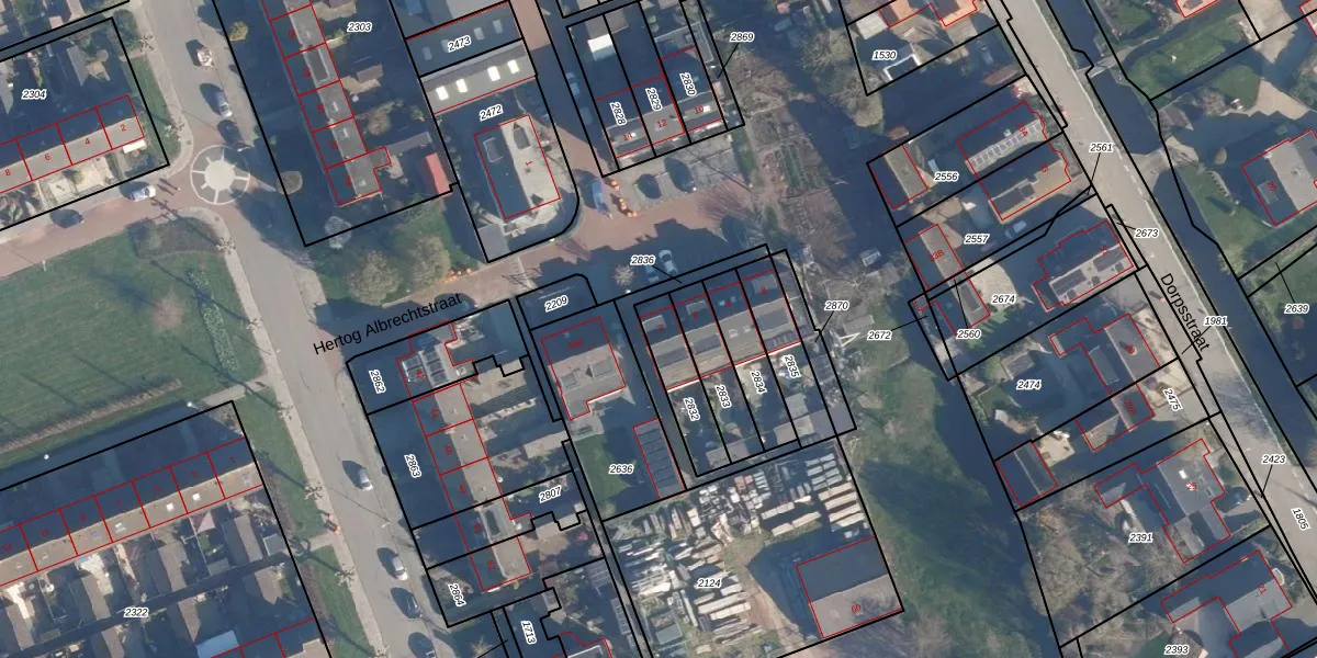 Gebruik de zoekbalk of klik op een perceel voor informatie over de adressen binnen dit perceel.