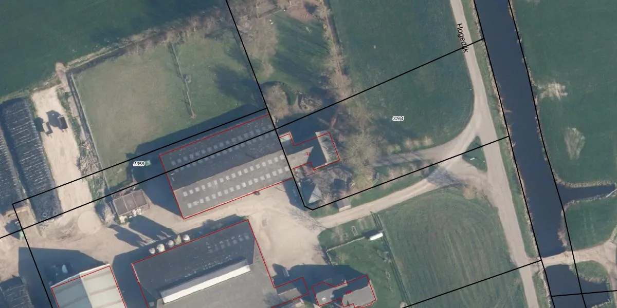 Het perceel waarop Hogedijk 31 staat heeft een oppervlakte van 2100 m². Dit is een zeer groot perceel. De perceeloppervlakte wordt geregistreerd door het Kadaster. Gedetailleerde informatie over de maten van dit perceel kunt u vinden in het rapport Kadastrale kaart met maatvoering van Hogedijk 31.