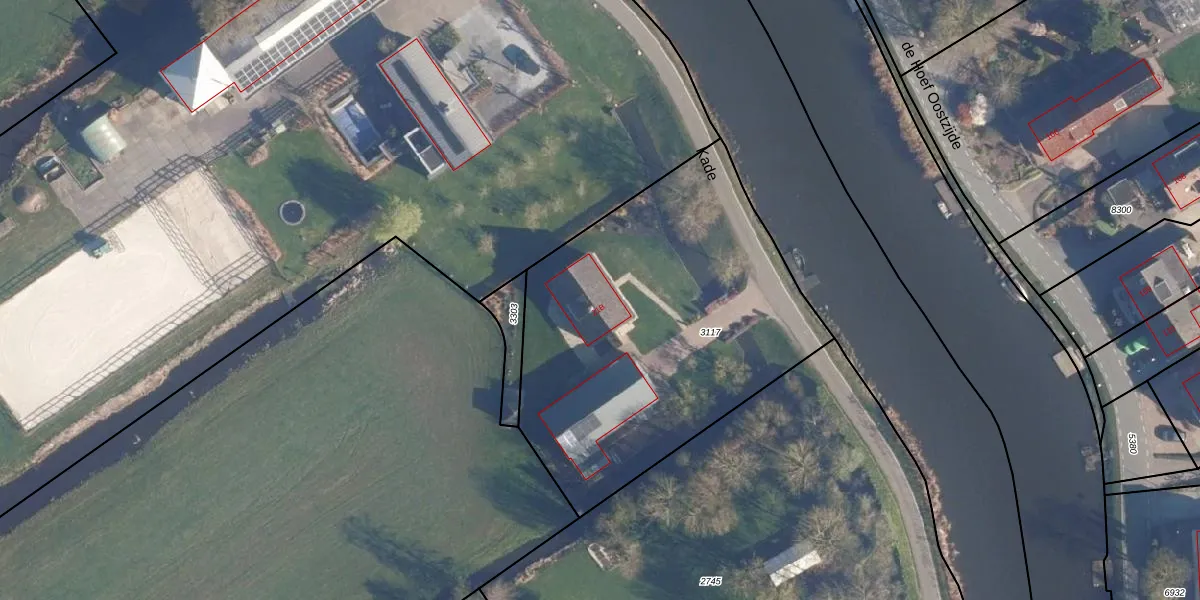 Het perceel waarop Kade 21-B staat heeft een oppervlakte van 1985 m². Dit is een zeer groot perceel. De perceeloppervlakte wordt geregistreerd door het Kadaster. Gedetailleerde informatie over de maten van dit perceel kunt u vinden in het rapport Kadastrale kaart met maatvoering van Kade 21-B.