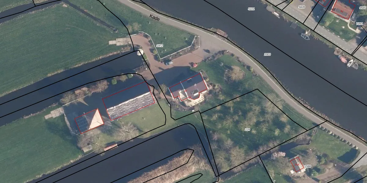 Het perceel waarop Kade 33 staat heeft een oppervlakte van 3870 m². Dit is een zeer groot perceel. De perceeloppervlakte wordt geregistreerd door het Kadaster. Gedetailleerde informatie over de maten van dit perceel kunt u vinden in het rapport Kadastrale kaart met maatvoering van Kade 33.
