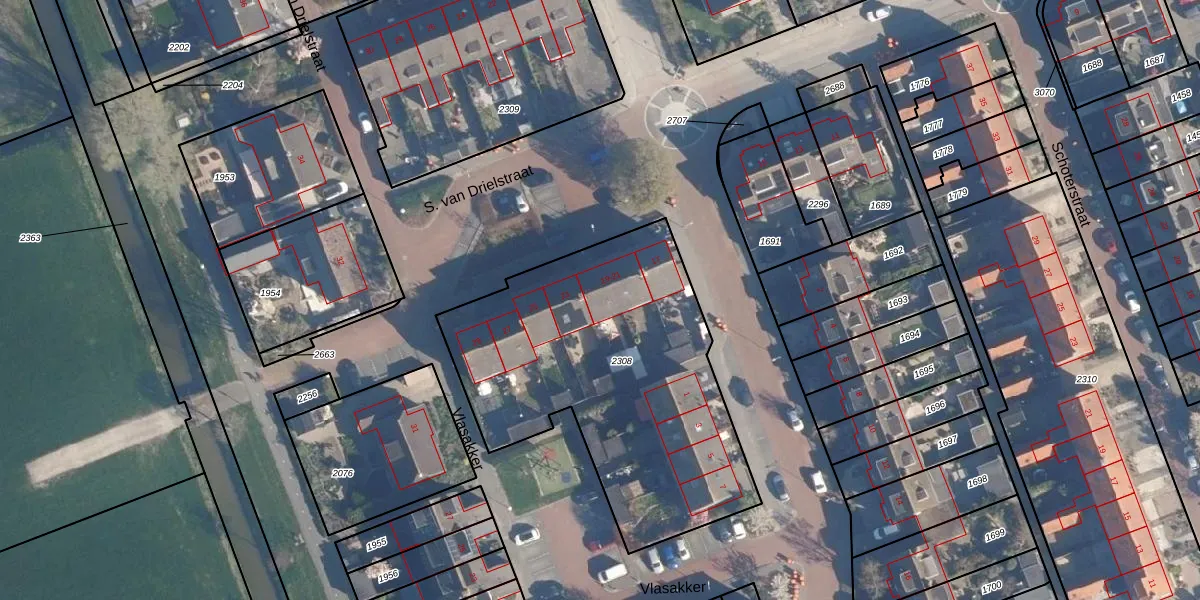 S. van Drielstraat 21 is gelegen op kadastraal perceel ZVH01B2308. Deze kadastrale aanduiding is uniek en wordt gebruikt door het Kadaster om eigendomsrechten en andere zakelijke rechten vast te leggen. Het perceel maakt onderdeel uit van de kadastrale gemeente Zevenhoven.