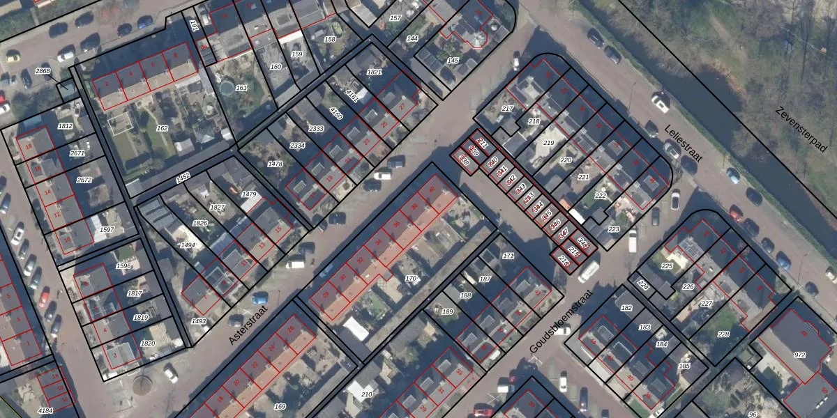 Het perceel waarop Asterstraat 38 staat heeft een oppervlakte van 1011 m². Dit is een zeer groot perceel. De perceeloppervlakte wordt geregistreerd door het Kadaster. Gedetailleerde informatie over de maten van dit perceel kunt u vinden in het rapport Kadastrale kaart met maatvoering van Asterstraat 38.