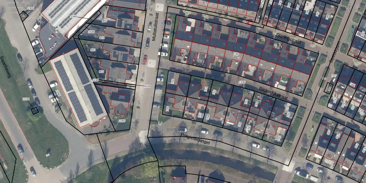 Het perceel waarop Bilderdijkstraat 2 staat heeft een oppervlakte van 148 m². Dit is een middelgroot perceel. De perceeloppervlakte wordt geregistreerd door het Kadaster. Gedetailleerde informatie over de maten van dit perceel kunt u vinden in het rapport Kadastrale kaart met maatvoering van Bilderdijkstraat 2.