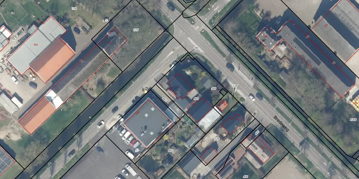 Het perceel waarop Bredeweg 96 staat heeft een oppervlakte van 915 m². Dit is een groot perceel. De perceeloppervlakte wordt geregistreerd door het Kadaster. Gedetailleerde informatie over de maten van dit perceel kunt u vinden in het rapport Kadastrale kaart met maatvoering van Bredeweg 96.