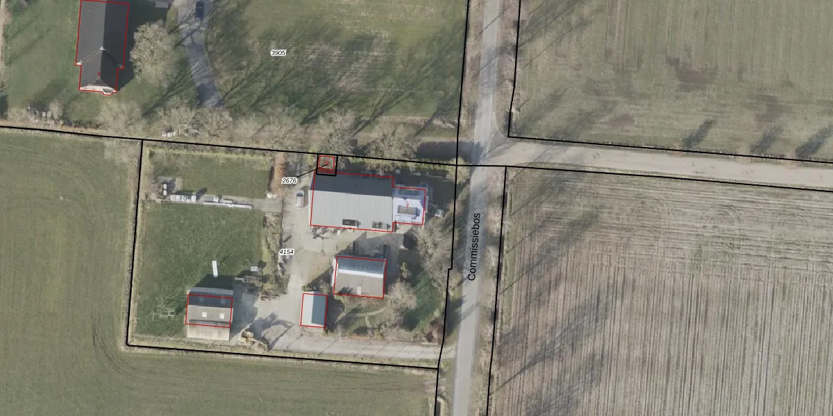 Het perceel waarop Commissiebos 7 staat heeft een oppervlakte van 3723 m². Dit is een zeer groot perceel. De perceeloppervlakte wordt geregistreerd door het Kadaster. Gedetailleerde informatie over de maten van dit perceel kunt u vinden in het rapport Kadastrale kaart met maatvoering van Commissiebos 7.