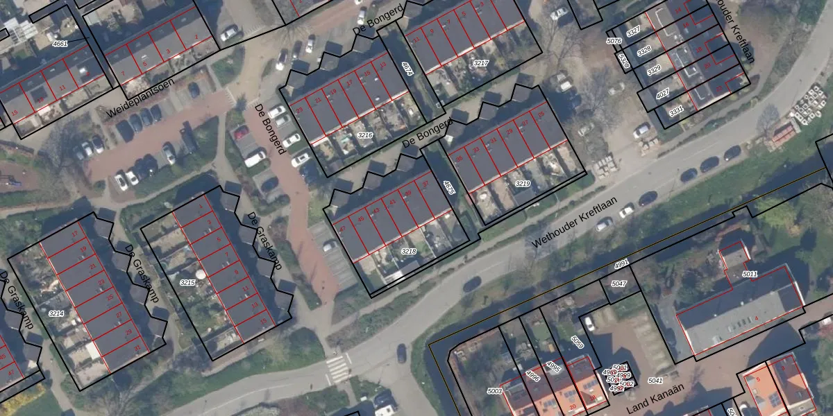 Het perceel waarop De Bongerd 39 staat heeft een oppervlakte van 672 m². Dit is een groot perceel. De perceeloppervlakte wordt geregistreerd door het Kadaster. Gedetailleerde informatie over de maten van dit perceel kunt u vinden in het rapport Kadastrale kaart met maatvoering van De Bongerd 39.